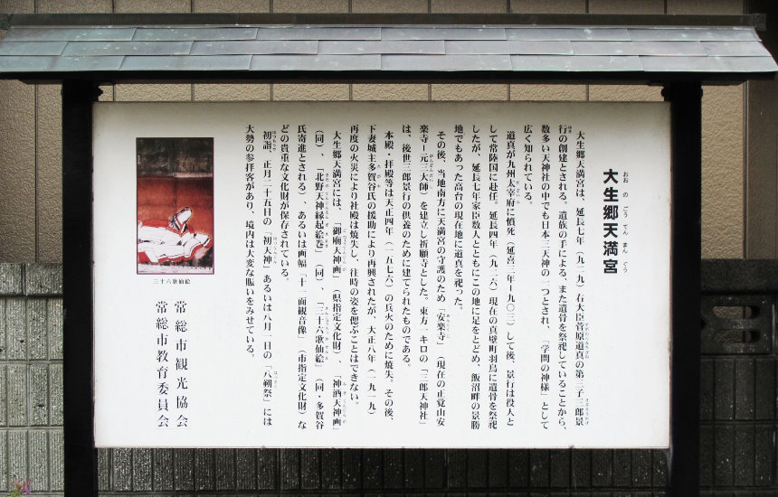 大生郷天満宮は、茨城県常総市に鎮座する由緒ある神社で、学問の神として知られる菅原道真公を祀っています。延長7年(929年)創建と伝えられ、道真公の遺骨を祀る御廟として建立された全国でも珍しい天満宮であり、関東から東北にかけて最古級の天満宮ともいわれています。
